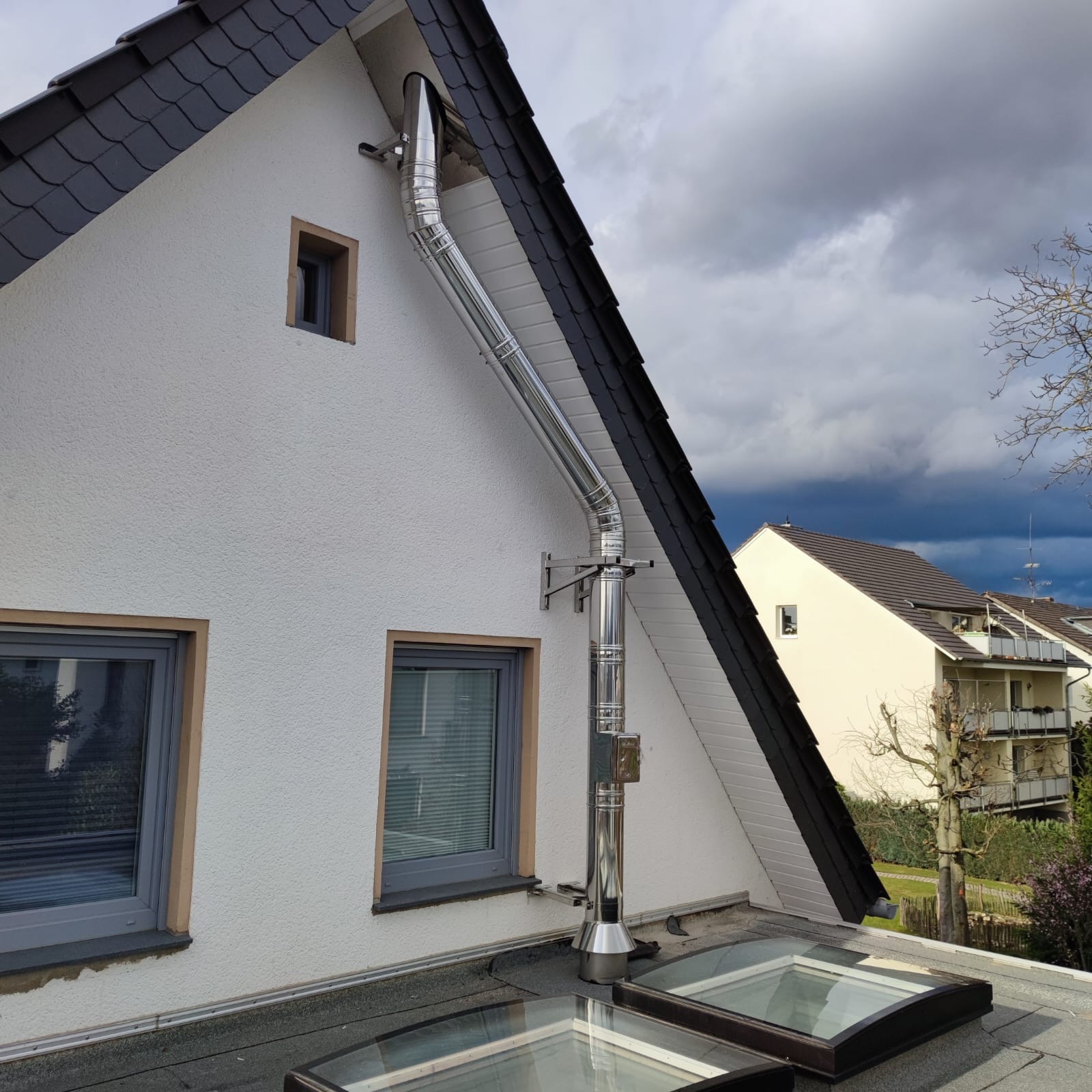 Sie besitzen in Ihrem Eigenheim oder Ihrer Wohnung keinen Schornstein? Sie wünschen sich aber sehnlichst einen Heizkamin, einen Kachelofen oder einen Kaminofen? Dann haben wir für Sie eine passende Lösung. In den Fällen, wo bei der Planung Ihres Hauses kein Schornstein eingebaut wurde, bauen wir gerne nachträglich einen für Sie ein. In der Regel verwenden wir ein doppelwandiges Schornsteinsystem das alle baulichen Anforderungen erfüllt und fachmännisch abgenommen wird. Ganz nach Wunsch und Optik integrieren wir den Schornstein in das Raumdesign Ihres Hauses oder führen Ihn entlang der Außenfassade.